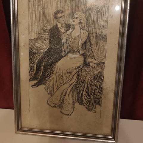 Touch-blæk tegning af Louis Moe (født 1859) i træramme, glas og passepatou.