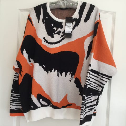 1: Fabr. Micha Sort / hvid brede tværstriber - str. small / str. 36" og med 50 % cotton / 50% acryl - kr. 200,00
