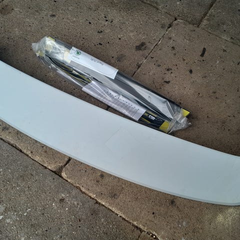 Original hækspoiler til Skoda Rapid NH3 spaceback (sedan udgaven, dog 5 døre). Blev aldrig monteret. Skal lakeres i bilens farve. Original Skoda monteringsvejledning medfølger.