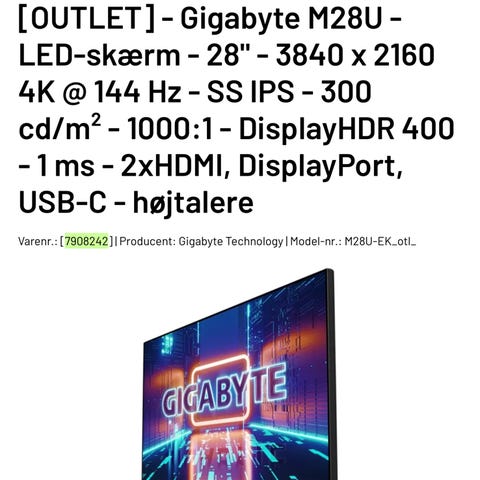 Enormt flot billede på skærmen, og jeg ville selv bruge den hvis min computer kunne køre 4k. Men da min computer ikke er helt ny længere, sælger jeg den for at en anden kan få gavn af sådan en lækker skærm.
