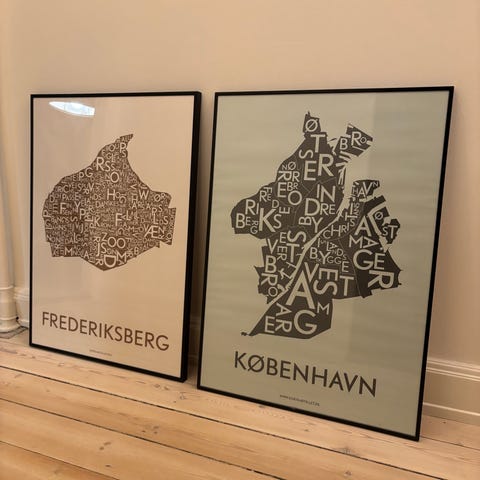 Flot poster fra Kortkartellet, måler 50x70 cm. I sort ramme fra Ikea.