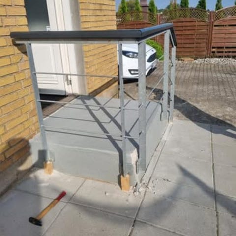 Tre stolper til at sætte i beton - ca 180cm mellem hver stolpe - se billedet.
