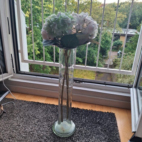 Flot Tysk glasvase i presset og riflet glas