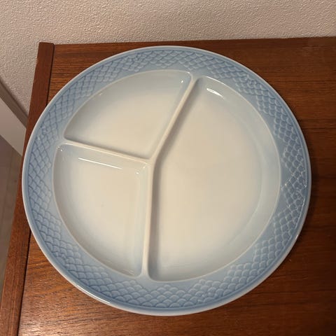 Blå tone, Hotel, Grill- eller fonduetallerken sælges. Afhentning foretrækkes. Prisen er pr. stk., jeg har 11 i alt.