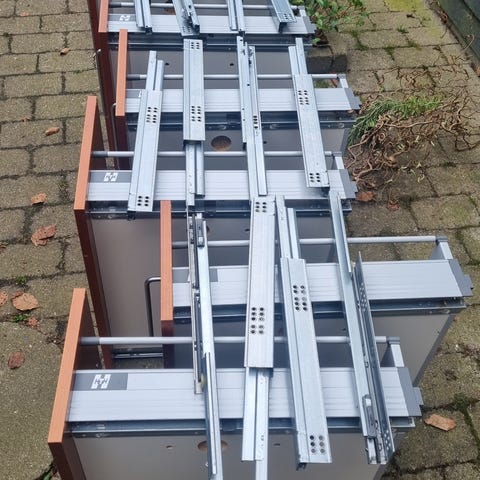 3 skuffer til et 50 cm skab ink skinner og 3 håndtag - 600 kr