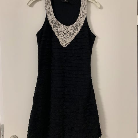 Sortkjole til kvinder i størrelse S med blomsterprint. Kjolen har lange ærmer og knaplukning foran. Materialet er let og egnet til hverdagens brug.