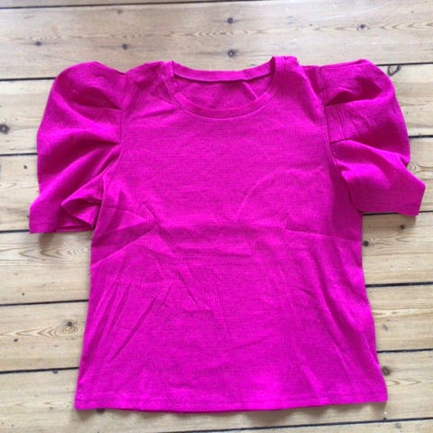 Flot pink bluse med blonder på den øverste del. Kun brugt en enkelt gang.