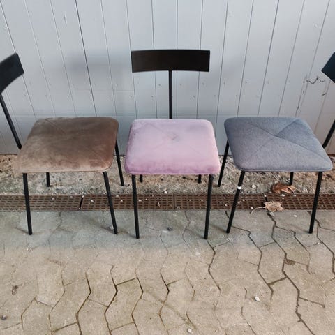 Farven vil jeg betegne som ‘karry’. Tror ikke at stolen produceres i denne farve længere.