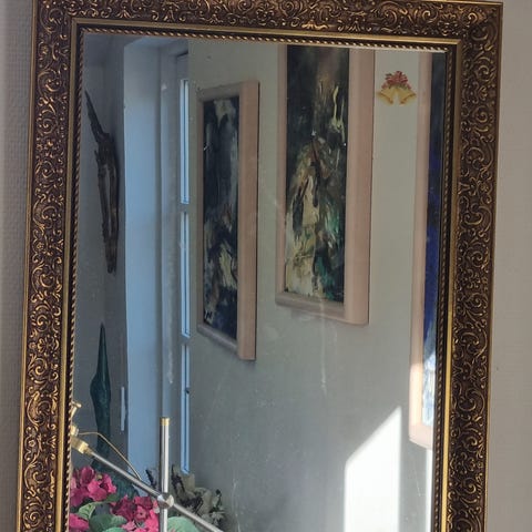 Billedet/spejlet ligger dybere end rammekanten og giver en flot effekt med det sorte velour.