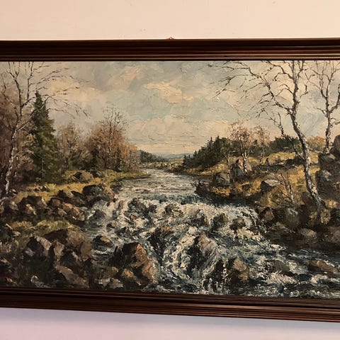 Oliemaleri, Oluf S Randbøl, b: 49 h: 33, dejligt efterårsmotiv med lyng og træer langs åen. Olie på lærred, signeret Oluf S Randbøl, i god stand med pæn ramme. Rammemål 57x40. Gerne besked med sms, evt. forsendelse + porto.
