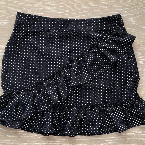 Sort nederdel med flæse. Str. XL.