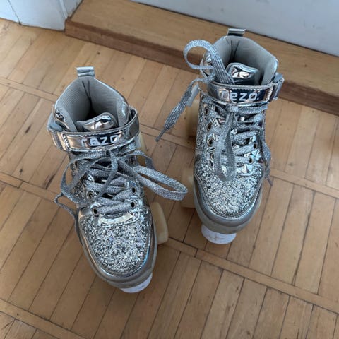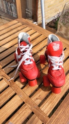Fine røde retro rulleskøjter. Næsten ikke brugt. Kan findes på Amazon til lige over 1000 (med forsendelse)