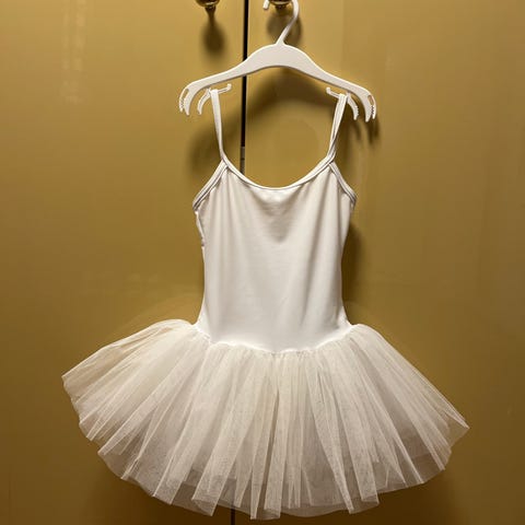 Lang tutu der aldrig blev brugt til forestilling som planlagt. Skørtet er som nyt. Str 12 år