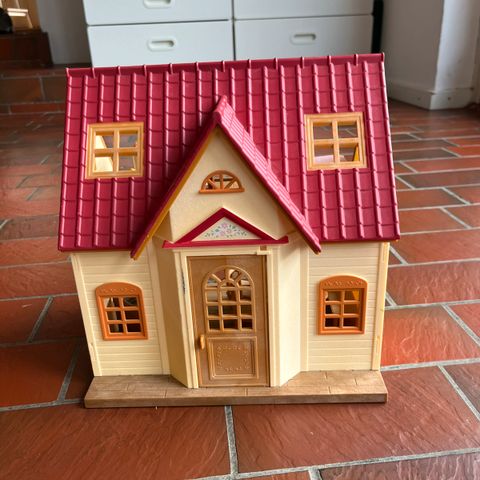 Hus med rødt tag + møbler