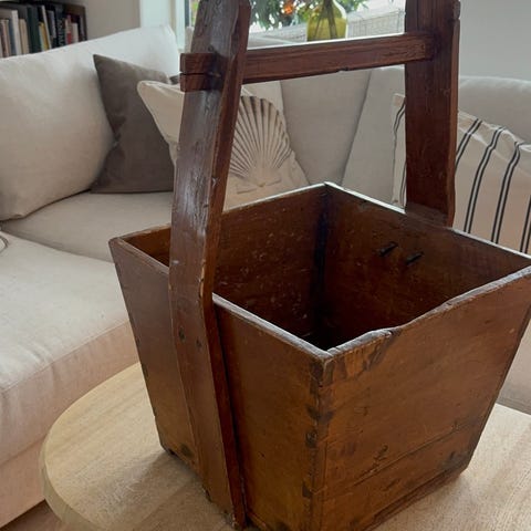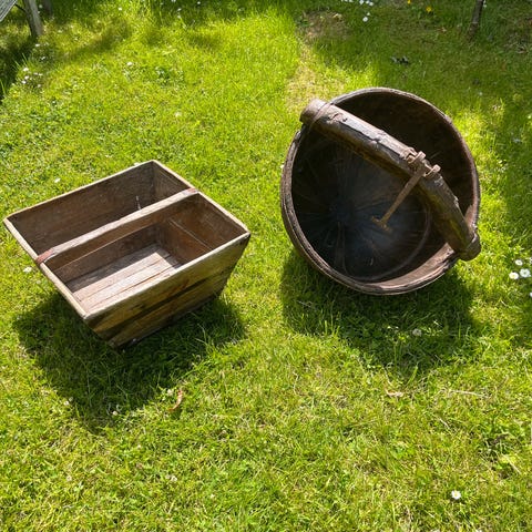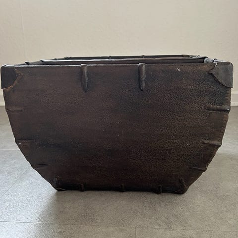 Det klassiske kinesiske rismål i træ og med de flotte gamle jernlister. Det har også de klassiske gamle kinesiske inskriptioner.