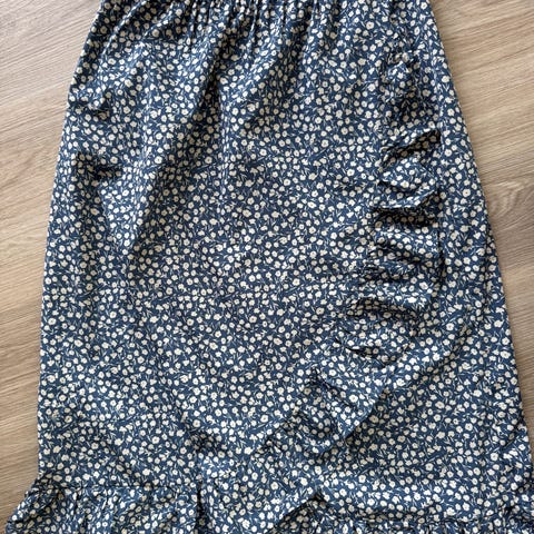 Fin blå nederdel i str 38. Lavet i Bomuld med lidt elastan i. I rigtig pæn stand. Måler ca 47 cm i længden.