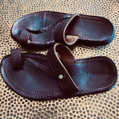 Jesussandaler. Klassisk retro og nostalgi. Jesussandaler som dengang i 70´erne og 80´erne. Produceret i Pakistan. Helt ny og ubrugte. Kan leveres i de fleste størrelser. Kan leveres både med den bredde tårem og den smalle tårem. Læderet er i starten stift, men sæt fødder og sandaler i en balje vand i et halvt minut og gå dem til, så bliver de hurtigt bløde og behagelige at gå med.