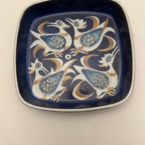 Designet tilskrives Kari Christensen, en af de kunstnere der arbejdede under Nils Thorsson i Baca-stilen, som var kendetegnet ved geometriske og naturinspirerede motiver i koboltblå og brunlige nuancer. Serien blev produceret i 1960’erne og 70’erne og er i dag eftertragtet blandt samlere for sin dekorative styrke og tidstypiske formsprog.