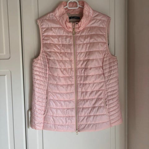 Vest, Betty Barcley, str. 42, Sort/orange, Næsten som ny, Velholdt kort vest som kun er lidt brugt.Sort med orange foer. Uden lommer, flot lynlås og meget let. Måler 51 cm fra nakken og ned. Uden brugspor.