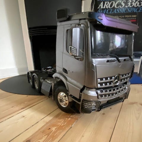Fjernstyret lastbil sælges. Tamiya MAN tgx. Der er monteret Servonaut M20+ og air4 samt et ps4 tænd/sluk modul til diverse lysfunktioner. Der er servo til at åbne og lukke skammel og air4 giver mulighed for trådløs overførsel af lys til eventuel trailer. Der medfølger flysky fs i6s 10 kanals fjernbetjening til lastbilen.