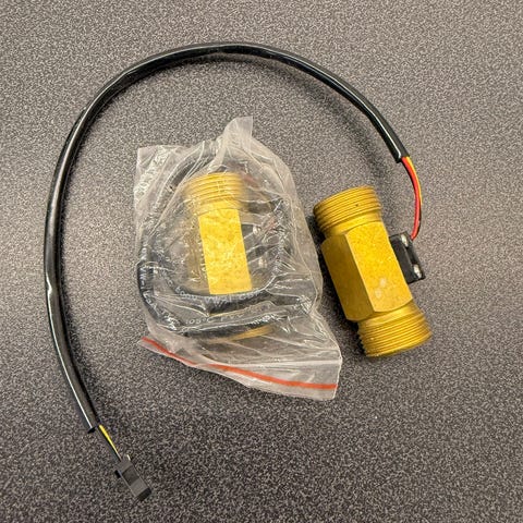 Sensoren er forsynet med tre ledninger: Rød (5-24VDC strøm), sort (jord) og gul (Hall effekt pulsudgang). Ved at tælle impulser fra sensorens output, kan du nemt spore væskebevægelse: hver puls er ca. 2,25 ml. Bemærk, at dette ikke er en præcisionssensor, og pulshastigheden varierer en smule afhængigt af strømningshastighed, væsketryk og sensororientering. Du skal foretagen en omhyggelig kalibrering, hvis der kræves bedre end 10% præcision. Den er dog fantastisk til grundlæggende måleopgaver!
