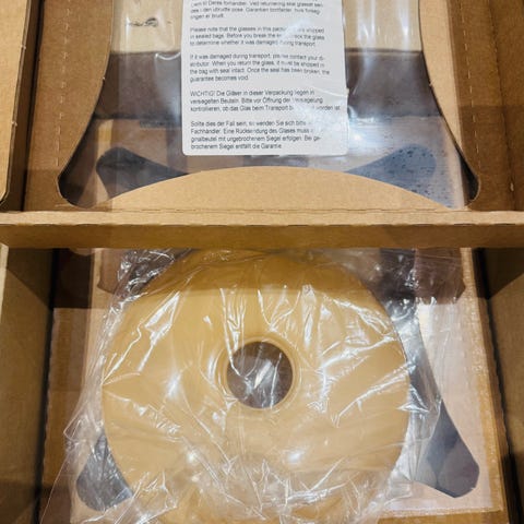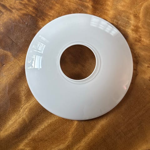 Har to skærme til en ph 2/1 bordlampe, der er en revne i den store skærm og et hak i mellem skærmen