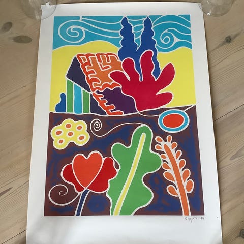 Plakat, Tom Krøjer, motiv: Plakat fra udstilling, b: 38 h: 70, Plakat fra udstilling december 2006. Galerie Nielsen, Kolding. Mindre revner