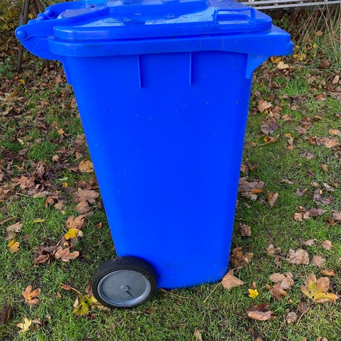 Container i grøn plast med låg og fire hjul for nem transport. Velegnet til opbevaring og håndtering af foder og udstyr.