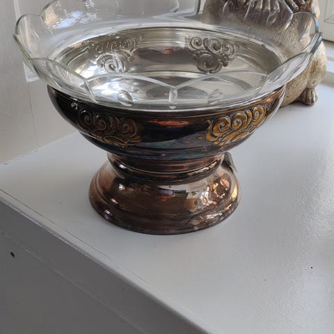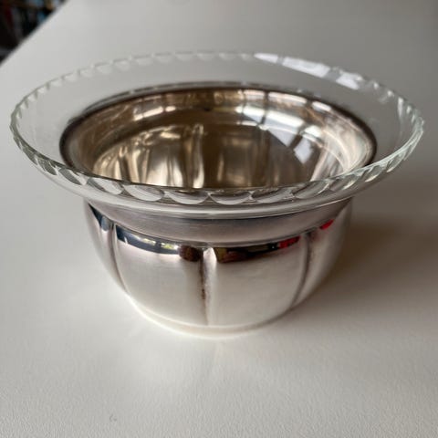 Sølvplet skål med glas indsats
