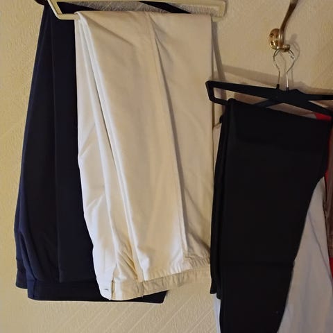 Sælger Et par nye lyse damebukser med smalle striber str 32.