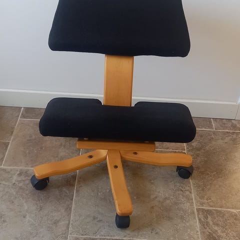 Ergonomisk Stokke Stol med regulerbar sædehøjde fra 41 - 59 cm, så det er muligt at sidde og stå under arbejdet