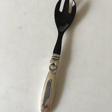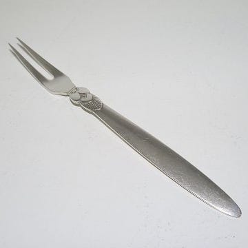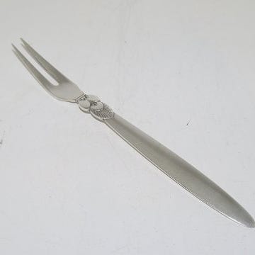 Georg Jensen Sølv. Kaktus. Forskærersæt. Sterling Sølv. Lille bule på enderne på begge dele ( som dog ikke ses ) Længde på kniv 32 cm. Længde på gaffel 26 cm. Selve kniven og gaflen er af rustfrit stål