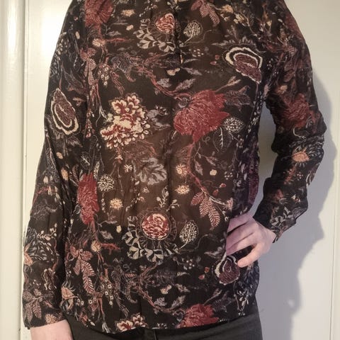 Super flot skjorte, lidt satinagtig stof, men 100% viskose.