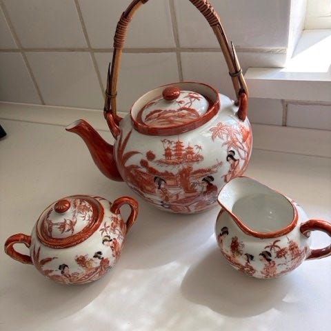 Flot, håndmalet stel fra Japan.