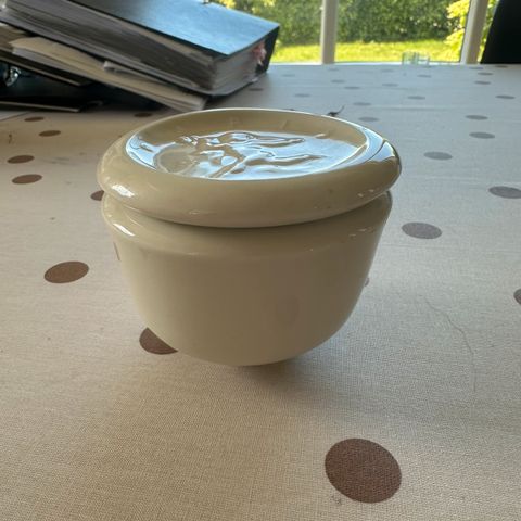 Porcelæn, Cremé krukke, Royal Copenhagen, Smuk Royal Copenhagen design Niels Thorsson Créme krukke med låg H8cm Ø10cm fra 1956 lavet på bestilling til det franske parfumeri i Paris