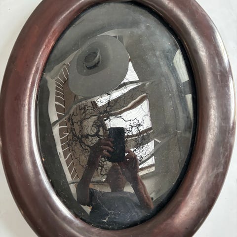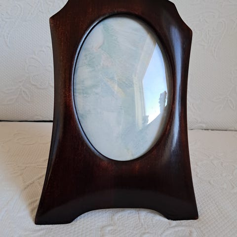 Smuk oval billedramme med buet glas.