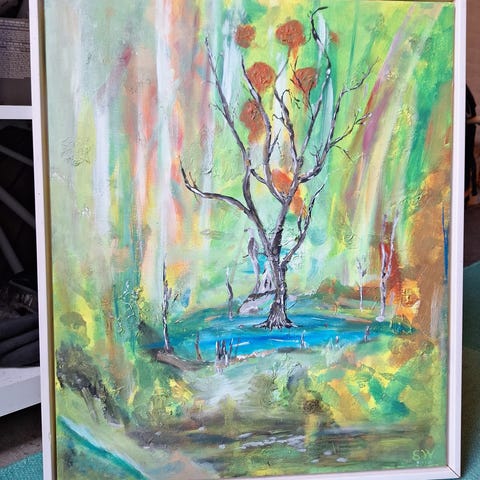 Landskabs maleri 50x50 på lærred. Kan sendes