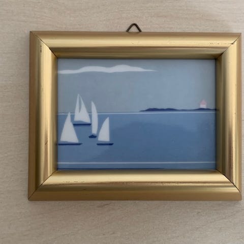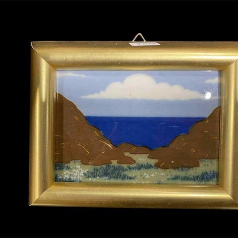 Lille porcelæn maleri af Anna Marie Ødegaard fra den norske porcelænsfabrik Porsgrund kæKeramik. 14 cm x 11 cm og 2 cm høj.