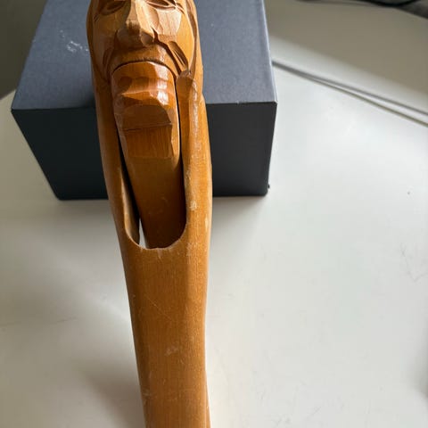 2 smukke velholdte nøddeknækkersoldater i malet træ. Velholdte. De er 60 cm høje. Farverne er smukke og afdæmpede. Den røde er f.eks. ikke knaldrød, men en mørk rød klassisk harmonisk farve. Nøddeknækkerne kan derfor bruges hele året, hvis du vil. Prisen er for begge. Evt fragt betales af køber