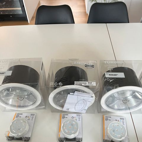 Sælger 8 stk. helt nye IKEA TVÄRDRAG-lamper. Aldrig brugt og stadig i original emballage. Perfekte som sengelamper eller til at sætte kulør på væggen med en pære i farver. Sælges enkeltvis for 150 kr. eller samlet for 1100 kr.