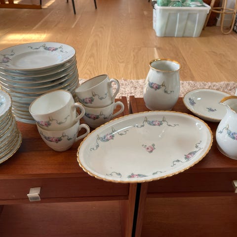 13kopper,kagetallerkner, underkopper og 1 flødekande og 1 sukkerskål- afhentes Herlev eller Vallensbæk