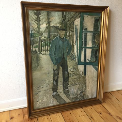 Oliemaleri, efter L.A. Ring, motiv: Andet, stil: Andet, b: 76 h: 93, Efter L. A. Ring - Kalkemanden - symbolisme og socialrealisme - som L. A. Ring er kendt for. Angivne mål er indvendige, udvendige mål bredde 93cm. højde 114 cm. Usigneret vel udført kopi. Originalen findes på Statens Museum for Kunst.