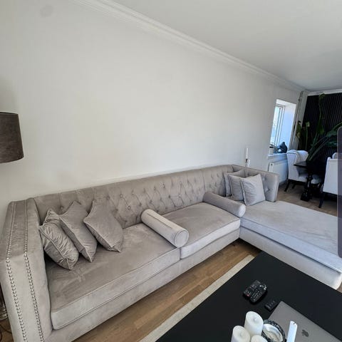 Meget fin lysebrun velour sofa fra Ilva. Ny pris 17000kr.