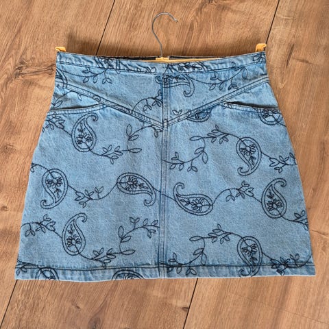 Ny sød nederdel. Livvidde 40 cm. Med lynlås i siden. Nypris 399,-