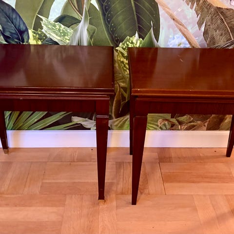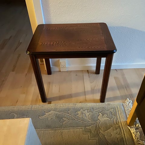 Bordene fremståt med mindre brugsspor der nemt kan slibes med sandpapir. Bordene fejler absolut