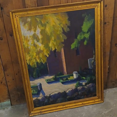 Og spejler sig i vandet. Det andet billede er lavet som spejlbillede, så derfor hører de sammen. I gamle rammer. Men de er faktisk en anelse forskellige. På det ene har hun fået lette vinger. Virkelig smukke billeder og let erotiske.