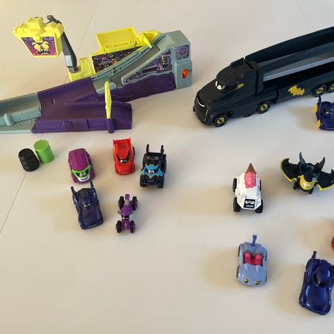 Man får BatWing, BatTank og Batcycle som kan samles til en stor kommandocentral som er 76 cm høj.
