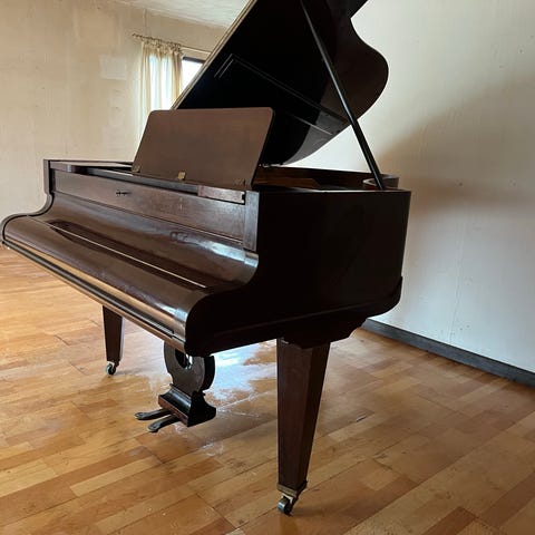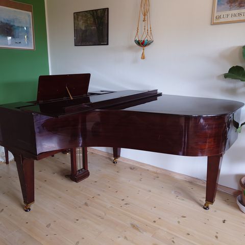 Måler ca 160 cm længden, bredden 145 og 97 i højden. Har været brugt en del, dog ikke de sidste par år på gr. af sygdom.Men fungerer fint. Det har en dejlig klang. Der er brugsspor som i de fleste tilfælde sikkert kan pudses væk. Køber skal selv sørge for transport.