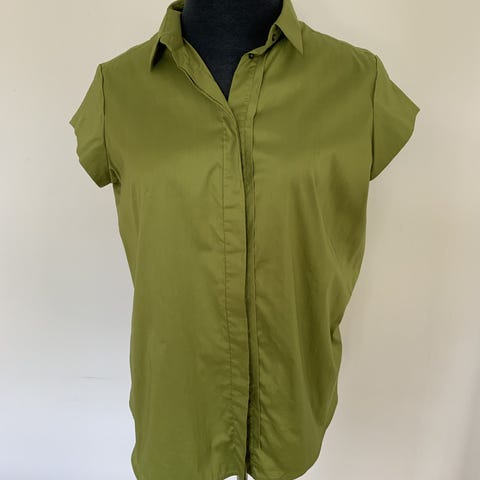 Boss traditionel helt hvid skjortebluse, kan på billederne virke grålig, fordi ginen er sort. 63% viscose og 37% silke. Brystmål cirka 120 cm.