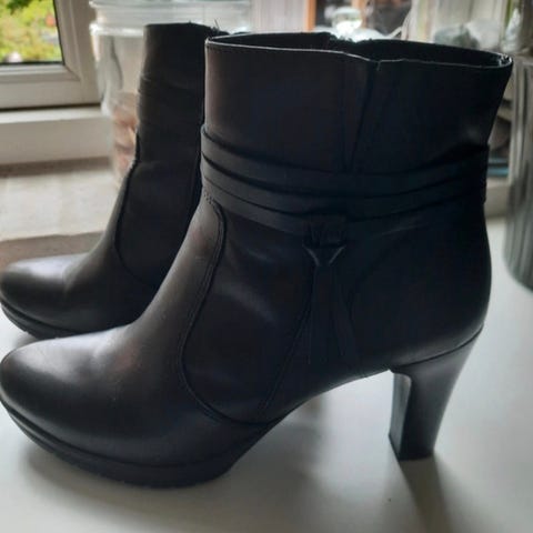 Rødbrune støvletter med ruskindlignende look. De har været prøvet på, men aldrig mere end det. De har stået i skabet siden, og er derfor som nye.